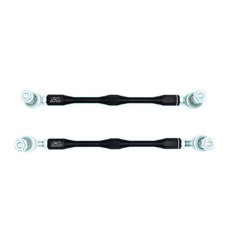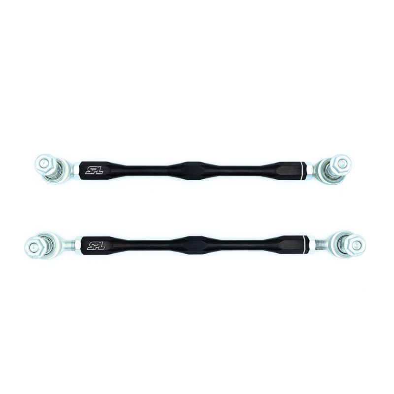 SPL front adjustable swaybar endlinks for the Toyota GR Corolla feature massive PTFE-lined FK 1/2" bearings to provide the highest load capacity for use with stiffer aftermarket sway bars. Custom heat-treated chromoly high-misalignment studs allow for extreme articulation angles (up to 65°) to prevent endlink bind when used with adjustable sway bars.Unlike OEM, SPL endlinks are adjustable, enabling you to eliminate unwanted preload on the sway bars, set the ideal bar angle, and, if equipped with ride-height adjustable coilovers, properly corner balance your car. The result is better handling, more sway bar tuning options, and less variation in performance between right-hand and left-hand turns. Even stock cars can take advantage of this upgrade by simply dialing out the swaybar preload that occurs when you sit in the car to drive it.BenefitsLarge Adjustability RangeEliminates Swaybar PreloadCorrect Swaybar Install AngleLightweight, High Strength ConstructionSelf-Cleaning, US Made, PTFE-Lined FK BearingsMaterials6061-T6 Aluminum Turnbuckle (Anodized Black)FK PTFE-lined 65° Studded Rod Ends (F1 Spec, Self-Cleaning)Easy, On-Car AdjustmentsThe 6061-T6 turnbuckles use opposing thread patterns (RH and LH) to allow you to adjust the length while it is still installed. Simply turn the turnbuckle to lengthen or shorten the link to the exact desired length and snug the jam nuts.Suitable for all uses, from daily driver to race car.