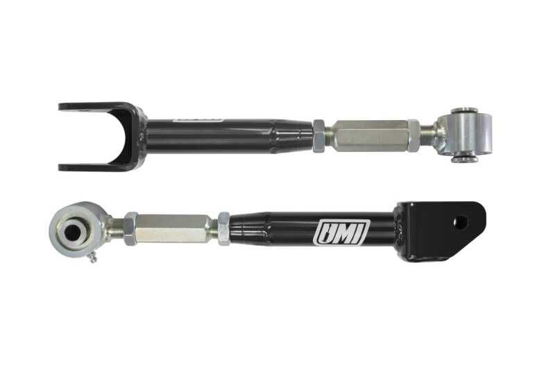 UMI's 2541 rear lower trailing links are the high-performance way to stiffen the flimsy factory GM rear suspension on your 6th Gen Camaro. These arms feature UMI's high performance, high articulation Roto-Joint along with a chromoly on-car adjuster and high strength tubular construction. Installed, these improve suspension stiffness and handling while providing on-car alignment capability using the to-tune adjuster.
