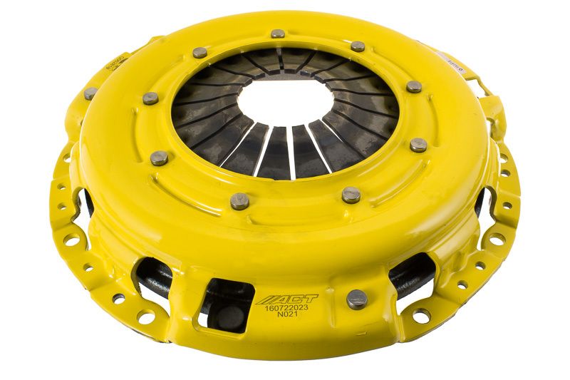 Light to moderate pedal effort, positive engagement; Available disc life extended by ACT's exclusive diaphragm design; Carefully engineered for improved durability, precisely assembled and accurately balanced; Recommended for street and race use; 100% clamp load tested and dynamically computer balanced for smooth high RPM reliability. Heavy Duty Pressure Plate.