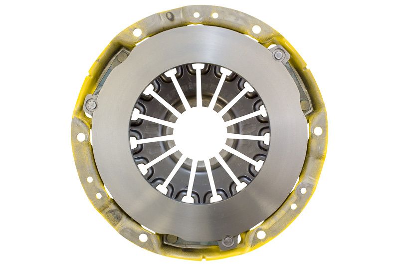 Light to moderate pedal effort, positive engagement; Available disc life extended by ACT's exclusive diaphragm design; Carefully engineered for improved durability, precisely assembled and accurately balanced; Recommended for street and race use; 100% clamp load tested and dynamically computer balanced for smooth high RPM reliability. Heavy Duty Pressure Plate.