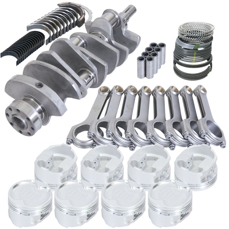 3.554" Forged 4340 Steel Crank, 5.933" H-BEAM Rods,3/8" ARP 2000 BOLTS,Forged 2618 ARIAS -17CC INVERTED DOME 3.592" PISTONS, PLASMA-MOLY FILE-FIT RINGS,CLEVITE H Rod/MAIN BEARINGS.. Assembly must be balanced by qualified machine shop before use!.